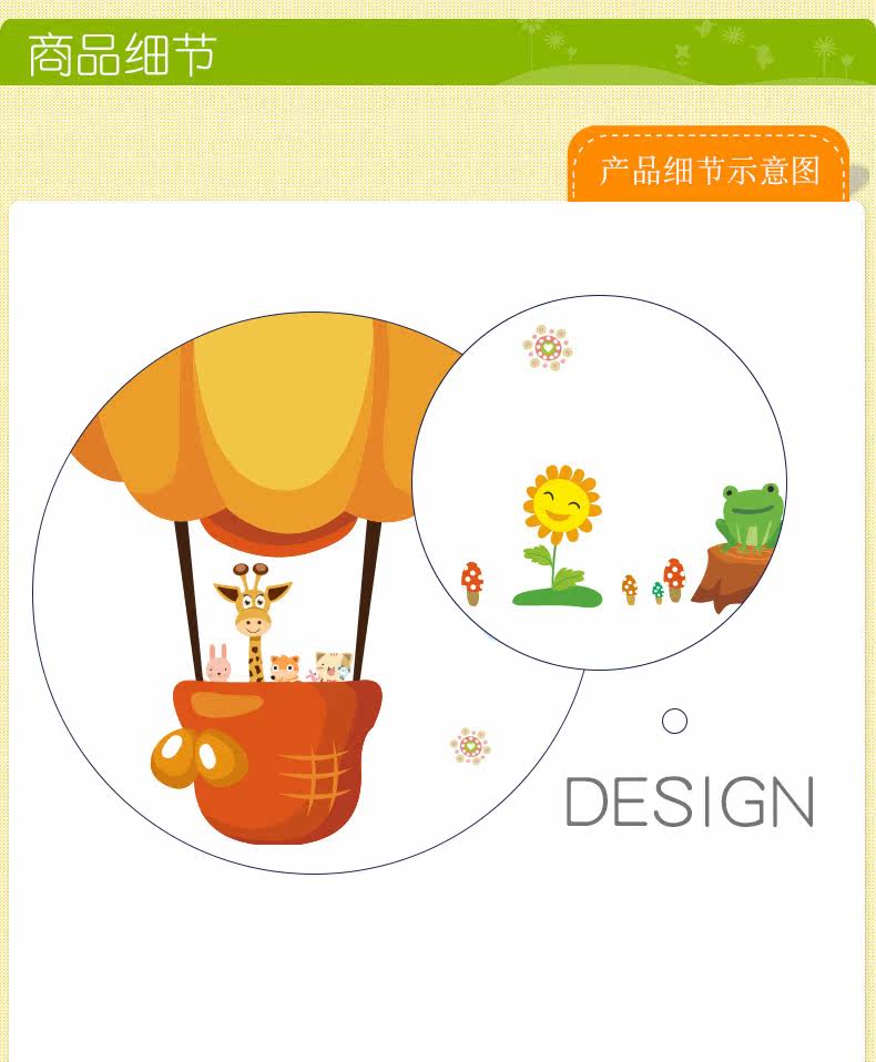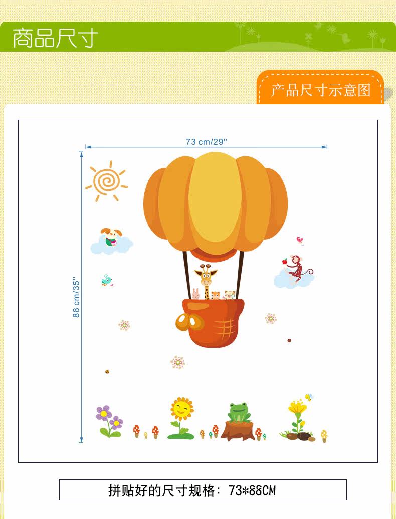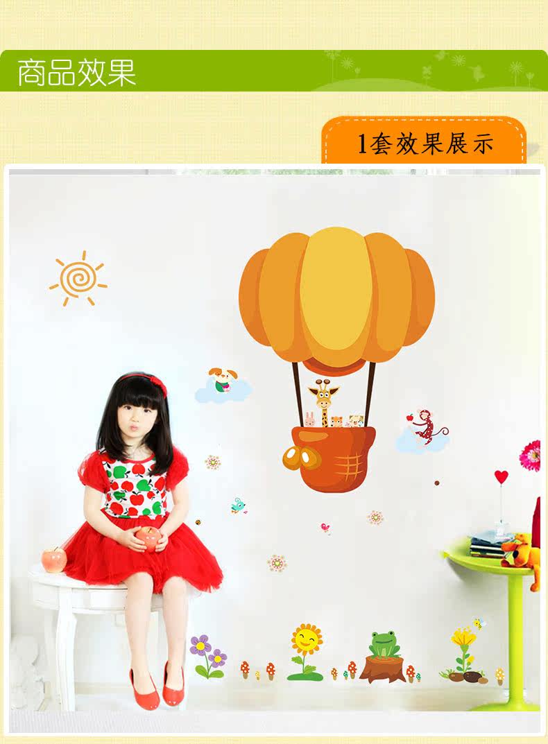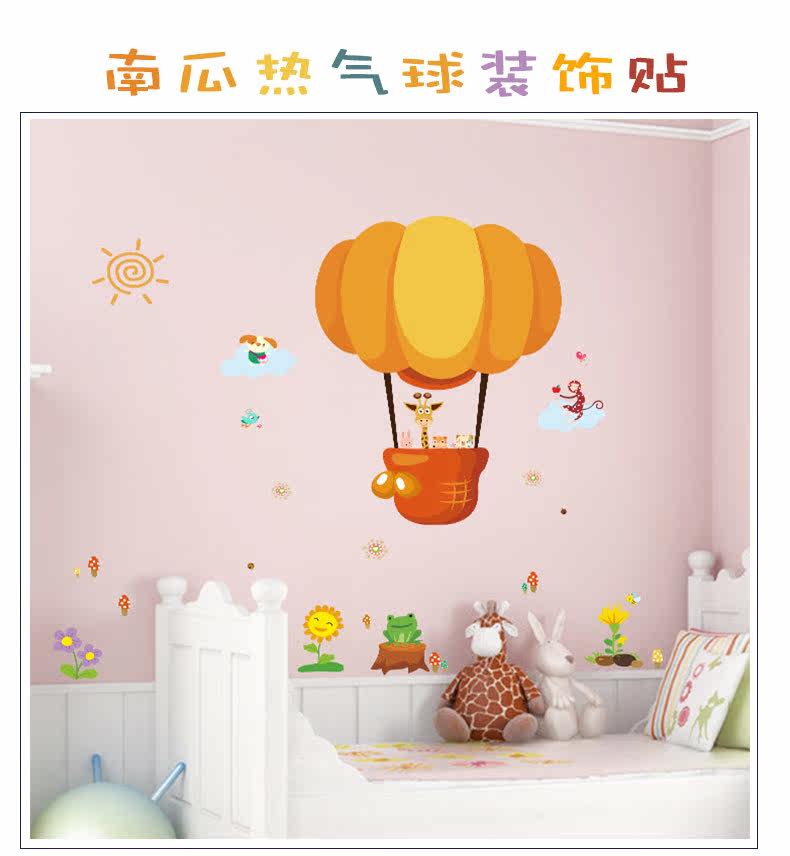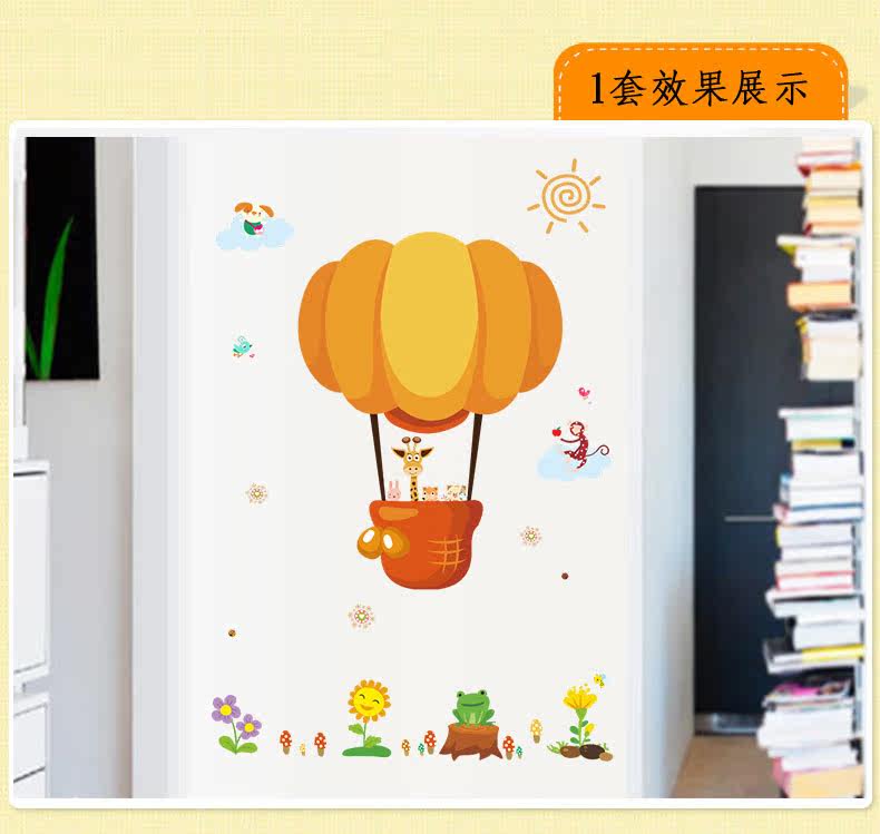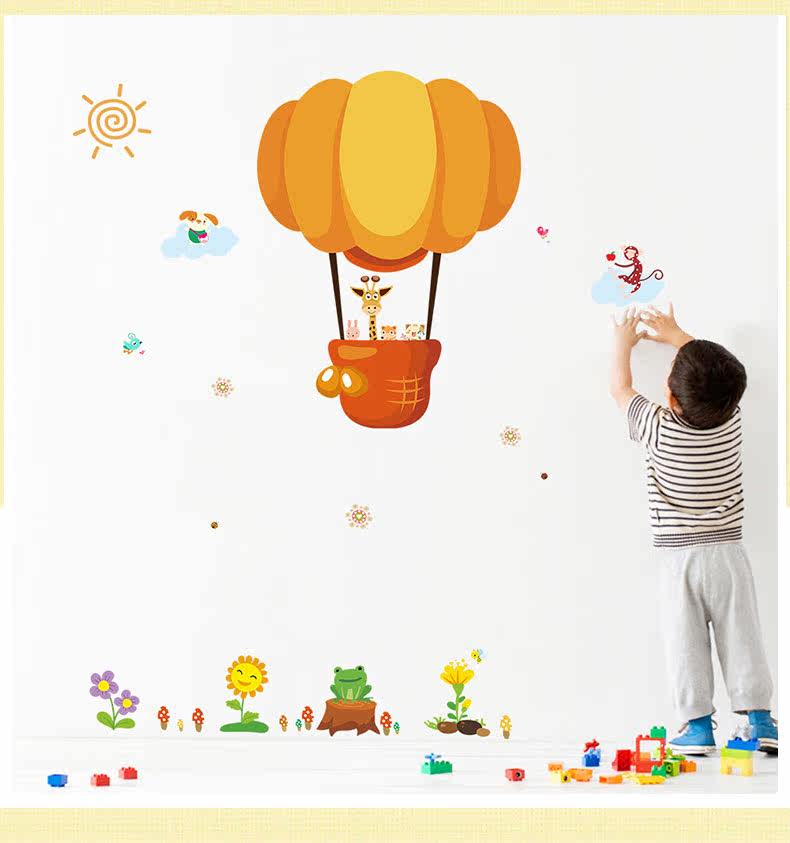 可爱卡通小动物热气球幼儿园宝宝房间装饰贴墙面壁纸自粘贴猴子