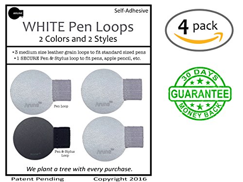 4x White Pen Loop by Arune - adhesive holder for Moleskine, Paper Mate, Pilot, journals, planners, sketchbooks, & more
