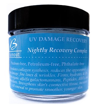 -. Feature : Clinically proven ingredients to visibly reduce signs of UV damage. / Stimulates collagen synthesis, reduces wrinkles, fights sun damage, hydrates, firms, smoothes, & lifts. / Bio-active peptides stimulate dermal metabolism and fight against wrinkles / Algae-based skin tightener, Antioxidants, AHA's from botanical extracts. Rich in organic alfalfa galactomannans. / Strengthens skin's connective tissue, increases cell renewal for smoother, younger looking skin
