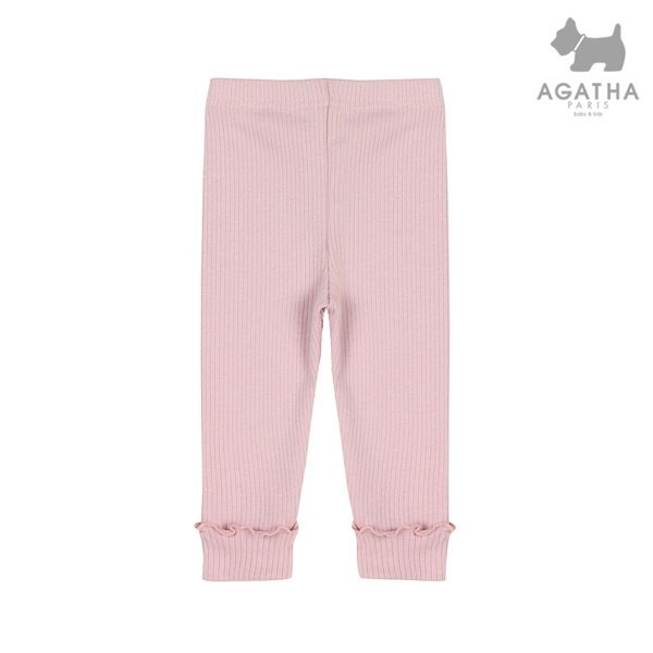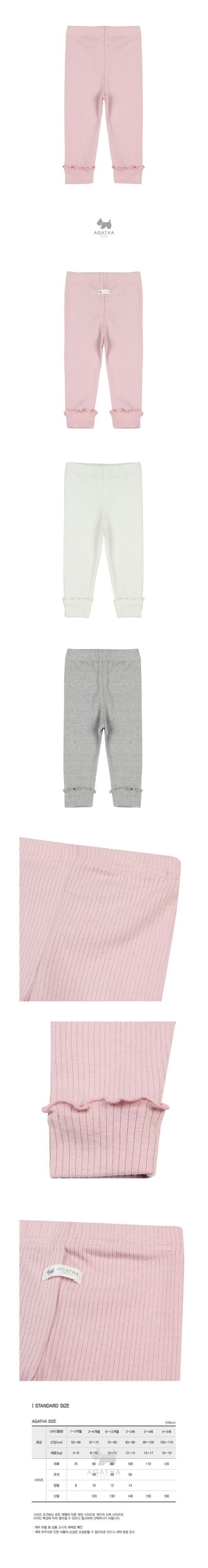 부드러운 촉감의 스판성 좋은 골지 소재의 레깅스밑단 롤업부분 프릴로 포인트를 준 스타일.