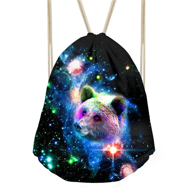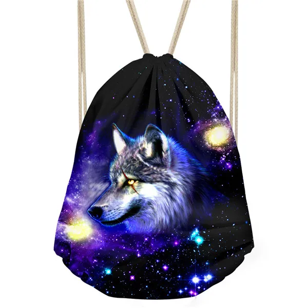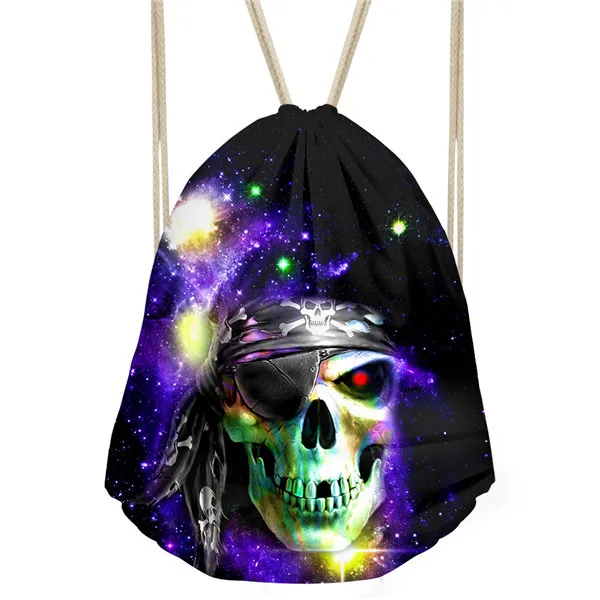 Type3:3D Cool Galaxy Skull Printing Feminina Backpack String Shoulder Bags