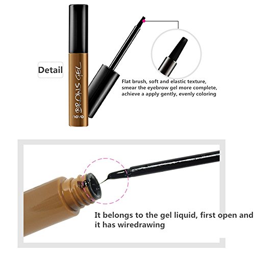 -. Feature : Flat brush,Vmake the paste evenly coated cover each eyebrow / Dyeing natural, lasting nondiscoloring, warm water can discharge makeup, good water resistance / Moisturizing,make the eyebrow more luster / Gel rich color, perfect match hair color / Soft and elastic texture, smear the eyebrow gel to make you attractive