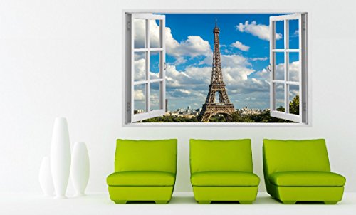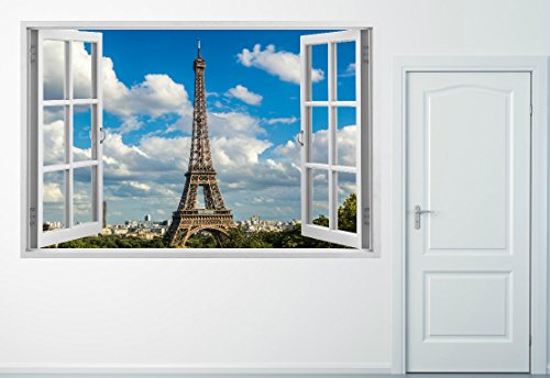 -. Title : 3D Removable Vinyl Wall Mural Stickers By Mi Alma - White Window Frame Design - Wide Variety Of Cityscapes - Easy To Apply Simply Peel & Stick - Incomparably Durable Wall Decals