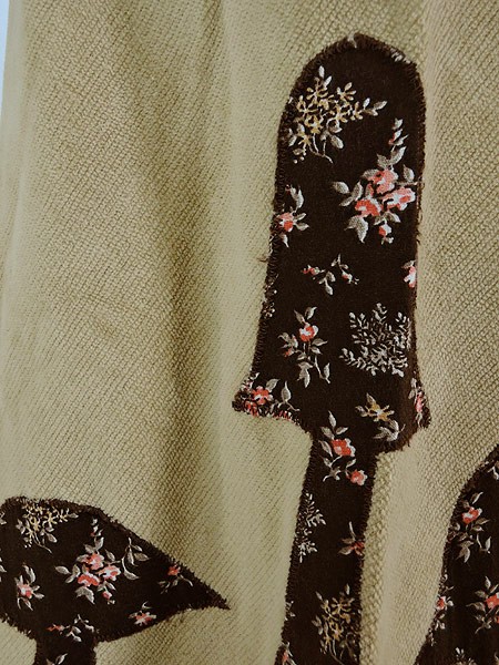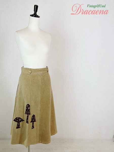 キノコのパッチワークがステキな巻きスカートです。