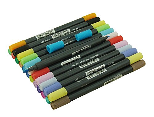 [Description] Set of 12 colors (No Duplicates ) with brush tip and fine tip in one marker _6.75`` long.The Durable nylon brush tip draw 1-2mm while fine tip draw 0.8mm Brush tip can create fine_ medium or broad strokes and fine tip gives consistent line The water-based ink is non-toxic_ blend able_ non-bleeding_ and odorless .Tips self-clean after blending Ideal for professional fine art _coloring book _and crafts Note: Not for children under 3 years