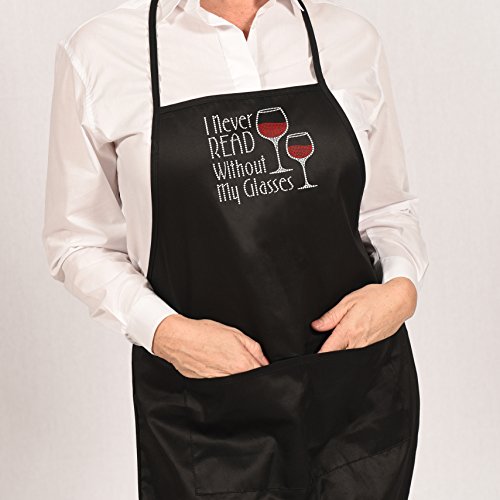 Shimmery Rhinestone Black Apron- "I Never Read Without My Glasses"