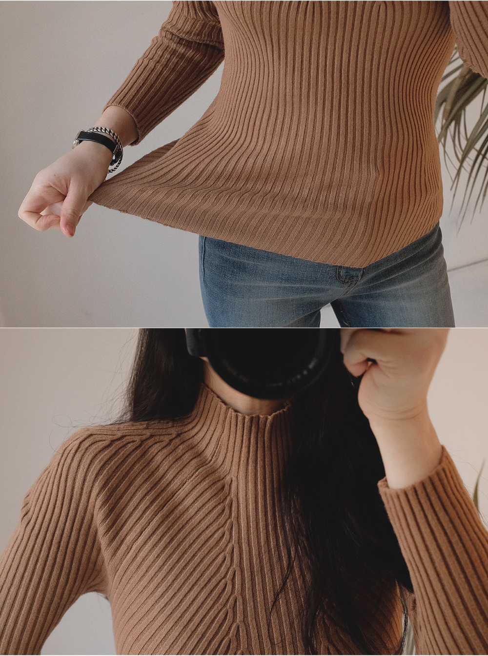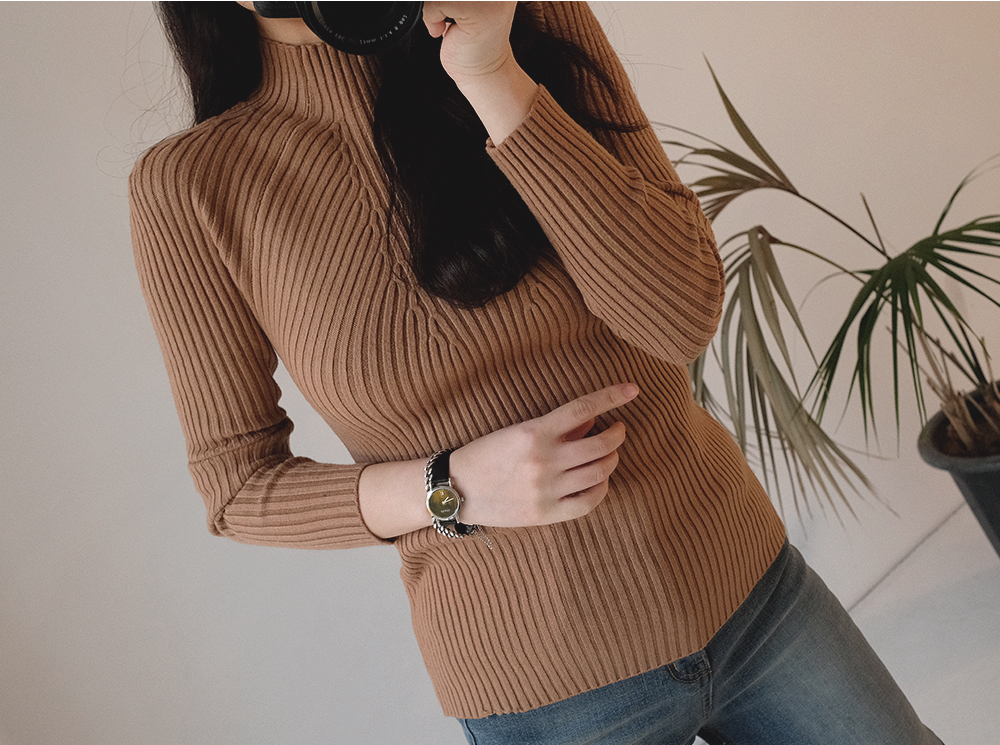 슬림한 핏으로 바디에 맞게 핏되어 여리여리한 실루엣을 연출해주는 니트에요~