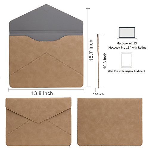 MacBook Air / Pro, iPad Pro, Surface pro 4 / 3 Case Sleeve, InRich 13.3 Inch [ Slim Envelope Design Soft PU Leather ] Laptop Sleeve Cover Portfolio Case Notebook Carrying Bag -Khaki