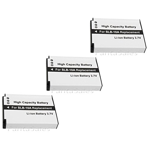 3-pc SLB-10A Replacement High Capacity Rechargeable Battery, Lithium ION No Memory Design