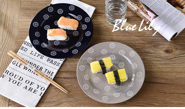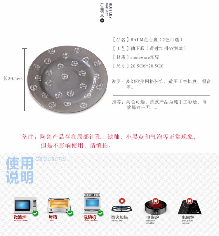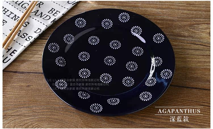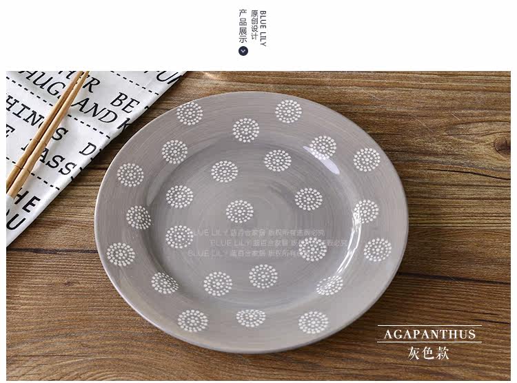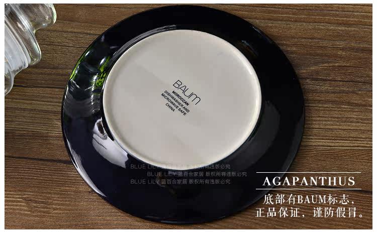 新款出口美国手绘釉下彩陶瓷盘子牛排盘北欧简约款点心盘