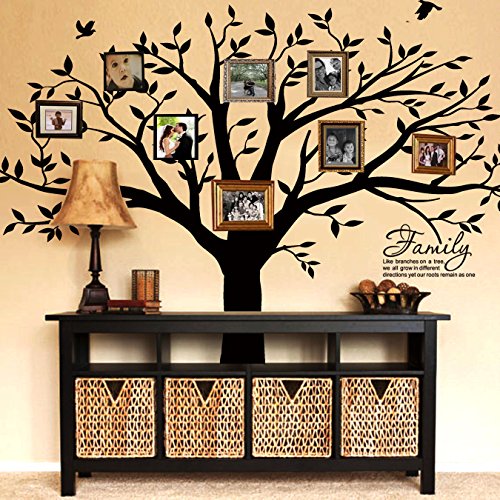LUCKKYY Grant Family Tree Wall Decal with Family Like Branches on a Tree Wall Decal Sticker Quote(102" wide x 91" high ) (Black)