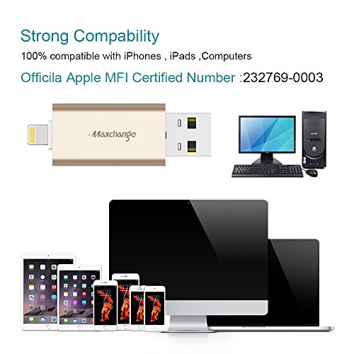 -. Binding : Office Product -. Brand : Maxchange -. Feature : SHOCKPROOF : lightweight metal body with soft-cover design / SAFE : lock iFlash via fingerprints and /or password / NEW DEVICE : Plug & Play Apple-Lightning connector thumb drive for iOS 7.1 device ,strong compatibility / FEATURES : Absolve limitations of onboard storage and cloud services and instead store photos and stream music/video using the iFlash's additional storage ( iflash can be download from APP Store ) / CONVENIENT & EASY USE : instant freely upload and download data in between the onboard storage ,iFlash drive and cloud drives. " iFlash " app comes with tutorial easy to use -. HardwarePlatform : mac -. Label : Maxchange -. Manufacturer : Maxchange -. Model : M-Max5 -. MPN : Max5 -. PackageQuantity : 1 -. PartNumber : Max5 -. ProductGroup : Office Product -. ProductTypeName : OFFICE_PRODUCTS -. Publisher : Maxchange -. Studio : Maxchange -. Title : Iphone Flash Drive,USB 3.0 Flash Drive with Lightning Connector for iphone/iPad/ipod/mac