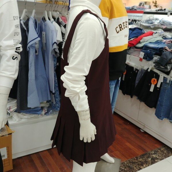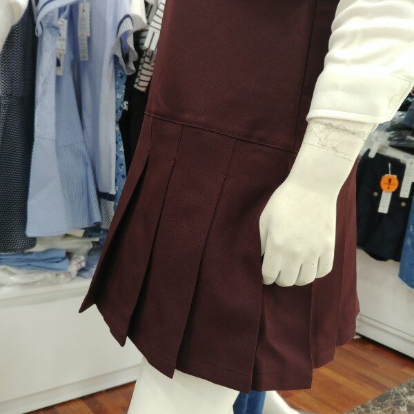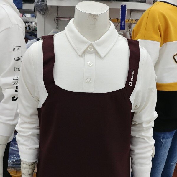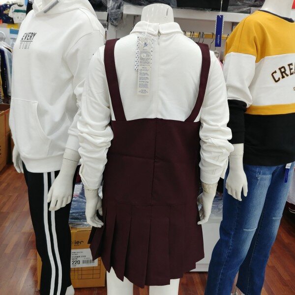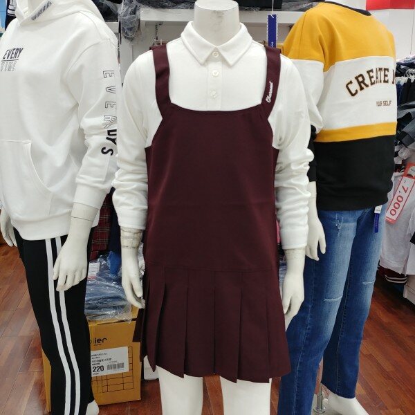 면레이어드 원피스입니다.와인칼라를 돋보이게 하는 화이트 배색이 안정됨을 보여줍니다.속치마의 안감까지 마무리되어 있습니다.적당한 간격의 주름폭이 얌전합니다.