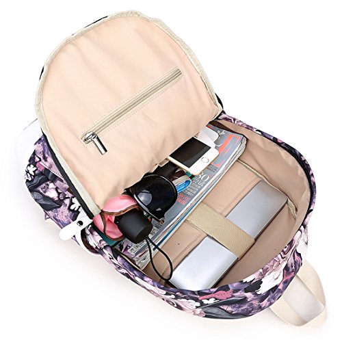 -. Feature : Material:Waterproof lightweight anti-scratch soft polyester, nylon lining, breathable soft cotton back panel, smooth zipper. The zipper of main compartment with double metal sliders and metal sliders have faux leather pull, easy to use. / Backpack dimension:27cm*14cm*43cm(Length*width*high), weight:0.44kg. Shoulder bag dimesion:20cm*22cm(Length*high),pouch dimesion:18cm*12cm(Length*high). Internal:1 zipper pocket, 1 laptop sleeve, 1 cellphone pocket,1 wallet pocket; external: 2 side pockets,1 front zipper pocket. / Backpack can hold 15 inches laptop, binder, A4 files; two side pockets can carry a water bottle and an umbrella; one front zipper pockets can hold daily small stuff. The shoulder bag is very lightweight to wear out, help you carry money, cell phone, notebook, keys; The pouch can help you carry coins, pens, eraser, pencil sharpener / The cute backpack set has padded adjustable straps and padded cushion for carry comfort and protect your back, padded cushion can protect laptop or tablet. / Exquisite fashion P.R.Int pattern, no fade, no smell, environmentally friendly and healthy. Great for teen girls or boys going to school & college or for casual use.