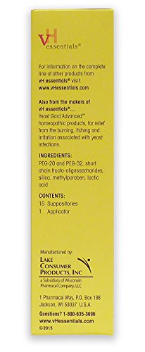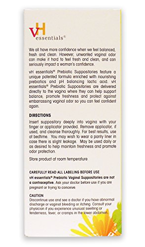 vH Essentials Prebiotic Vaginal Suppositories, pH Balanced for Feminine Health - 15 Count