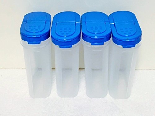 -. Feature : Tupperware Large Spice Shaker 4pc Set with Raindrop Blue Seals / Unique dual-sided seals have a larger opening on 1 side to fit spoon and the other side allows you to sP.R.Inkle / Modular design stacks to save space / Ideal for spices, Salt and Pepper, Cinnamon/Sugar, Baking Spinkles & more! / Top rack dishwasher safe