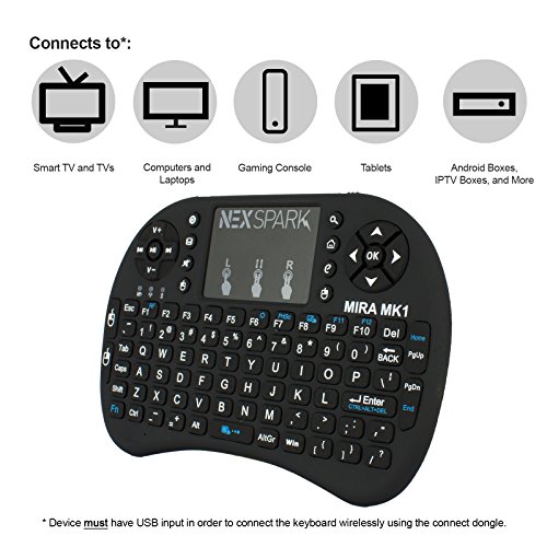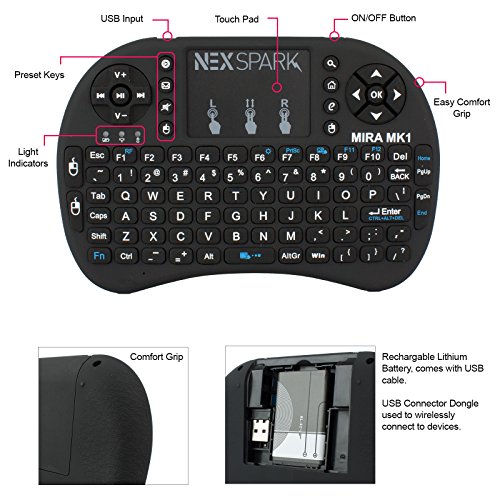 NEXspark Mira MK1 Mini Keyboard + Touchpad, Wireless USB Connect with Comfort Grip + Rechargeable Battery, Compatible with TVs, PCs, Game Consoles, Tablets, Android Boxes, IPTV Players