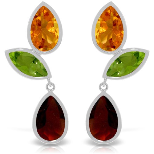 -. Title : 14k White Gold Dangle Earrings with Peridots, Citrines and Garnets