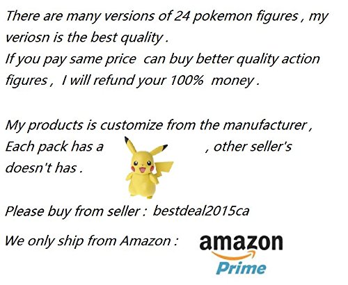 Feature : Material: High Quality PVC; Size: Approx. 1 (Inch) 2~3cm / A great toy for your kids, nice gifts for children, have fun with it / Pack of 24 figures / #1 : Pikachu ,#2 : Metagross ,#3 :Croagunk, #4: Seaking , #5: Shieldon , #6 : Nidoqueen , #7: Buizel , #8 : Mine Jr, #9 : Snivy, #10 :Politoed , #11 :Igglypuff , #12 : Hypno. / #13: Swampert , #14: Pidgeot , #15: Pignit , #16 :Reshiram , #17: Darumaka, #18: Cubone , #19 Slowbro , #20 Golduck , #21 Pichuisu, #22 Snubull , #23: Wynaut , #24: Feraligatr