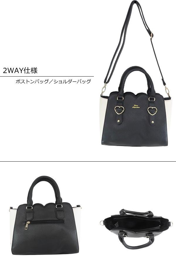 | ハートバックルとスカラップデザインの、可愛らしいボストンバッグ。気分やスタイルに合わせて、ショルダーバッグとしても使える2WAY仕様です。 |