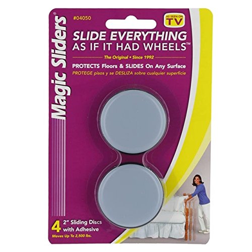 -. Brand : US Cargo Control -. Feature : Patented furniture sliders are a revolutionary way to move heavy furniture or appliances / Moving sliders move stoves, refrigerators, etc as well as medium- to larger-sized footed furniture / Quantity: 4 sliders per package / Material: Plastic polymer / Weight capacity : 2500 lbs. -. Label : US Cargo Control -. Manufacturer : US Cargo Control -. MPN : FS-04050 -. NumberOfItems : 4 -. PartNumber : FS-04050 -. ProductGroup : Home Improvement -. ProductTypeName : BUILDING_MATERIAL -. Publisher : US Cargo Control -. Studio : US Cargo Control -. Title : Round Furniture Sliders 2" - Pack of 4