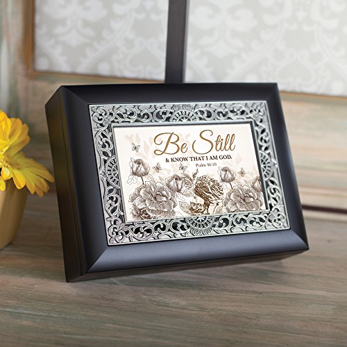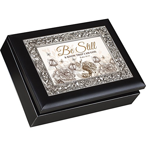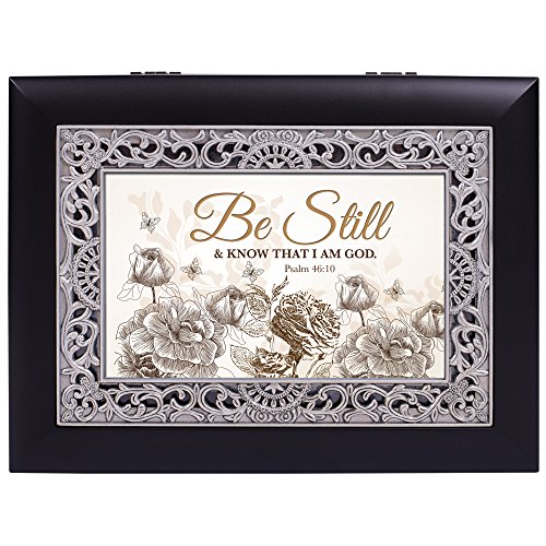Be Still Psalm 46:10 Black Ornate Silver Tone Inlay Jewelry Keepsake Box