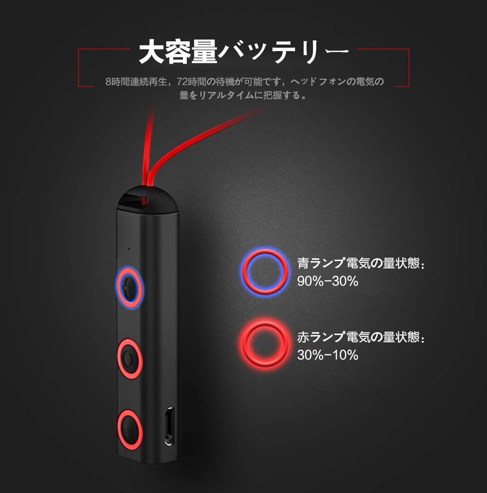 【大容量バッテリー】1回約2時間の充電で約4-5時間の連続使用(通話・音楽再生)と130時間の待機ができますので、通勤通学の行きかえりなどの際にも安心してご使用いただけます。バッテリー残量を表示するランプが付き、いつでも簡単ん確認できます。※イヤーピースは、自分の耳の穴のサイズに合ったものを取り付けることで遮音性も高まり、電車内等でも外の音が気にならず、好きな音楽を邪魔されず楽しめますので、ぜひお試しください!