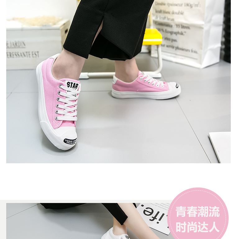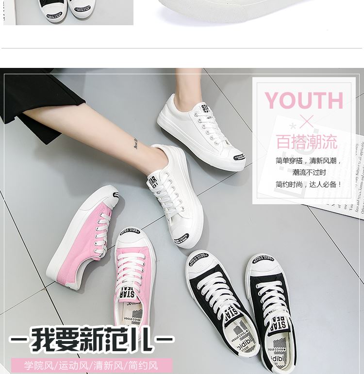 春季新款开口笑小白鞋女韩版学生系带白色帆布鞋平底休闲女鞋