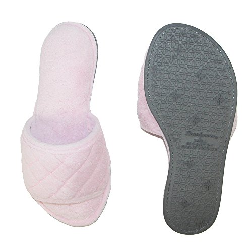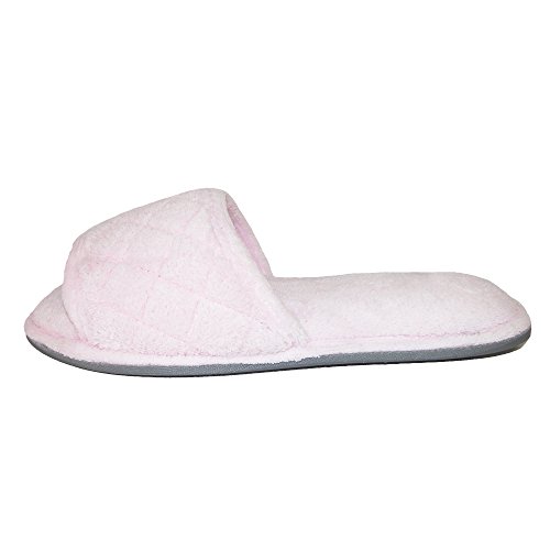 Product DescriptionAbsorbent terrycloth makes these women’s slide slippers ideal after you shower, or packing in your gym bag -- and they’re equally comfortable in dry conditions0