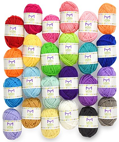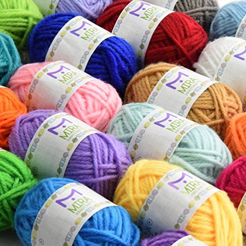 Premium Value Yarn Pack - 24 Acrylic Yarn Skeins - Assorted Colors - Perfect for Any Crochet and Knitting Mini Project - Resealable Bag - 10 GIFTS with Each Pack