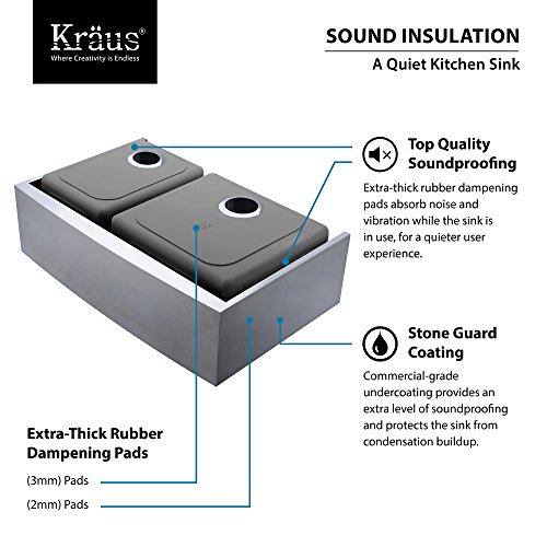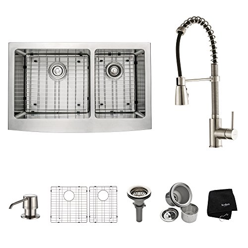 Kraus KHF203-33-KPF1612-KSD30SS 33" Farmhouse Double Bowl Stainless Steel Kitchen Sink with Stainless Steel Finish Kitchen Faucet and Soap Dispenser