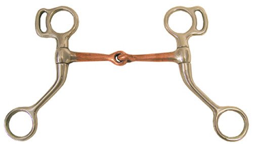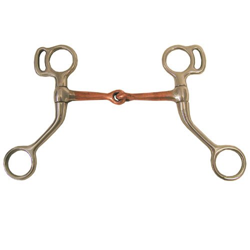 Product Description Copper Mouth Mini Horse Training Snaffle Bit. A transitional bit from a snaffle to a snaffle with a curb strap. Size: 3-1/2 and 4 1/4 Inch. 0