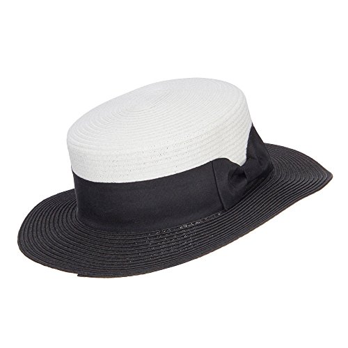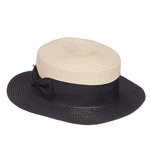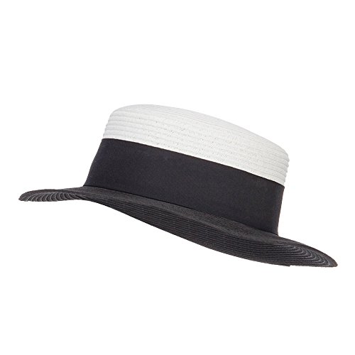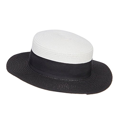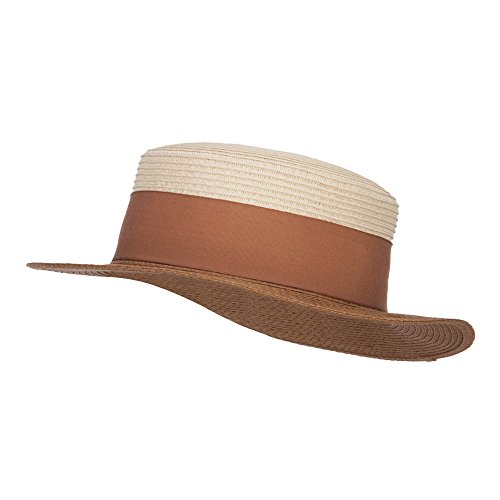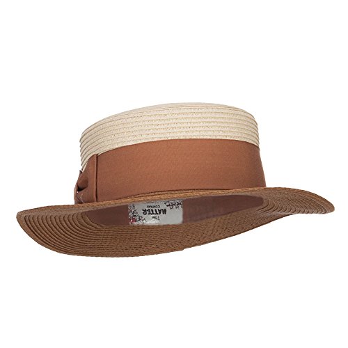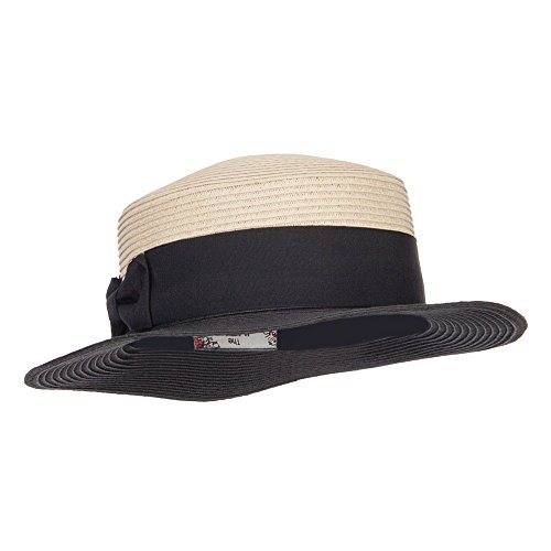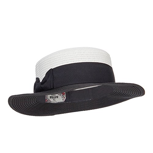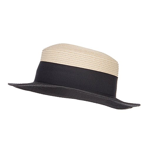 Binding : Apparel Product Description Stylish straw pork pie boater hat for ladies. Flexible round crown. Two tone hat. A solid thick grosgrain ribbon band is accented around the crown. Brim is flexible and flat. Our pork pie boater hat is great for casual wear, vacation, picnic, date, walks in the park and other summer outings. Spring and Summer. 12(W) X 12(L) X 3(H)inches. Cool, flexible and lightweight material. Available in different colors and styles. 0