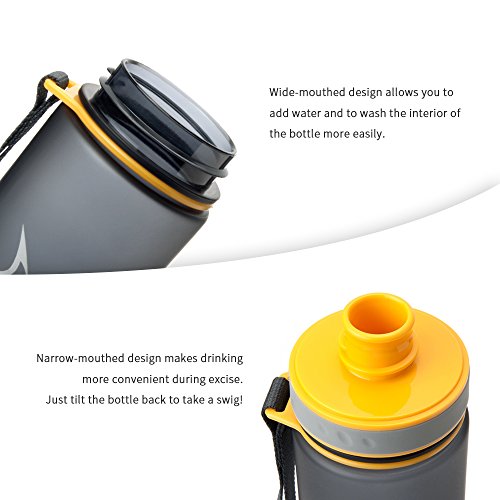 Two kinds of bottle mouth: Wide-mouthed design allows you to add water and to clean the interior of the bottle more easily. Narrow-mouthed design makes drinking more convenient during excise. Just tilt the bottle back to take a swig! Perfect for everyday workout at the gym!