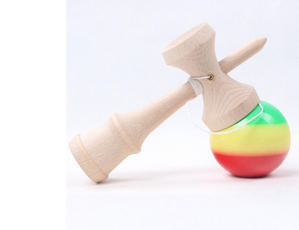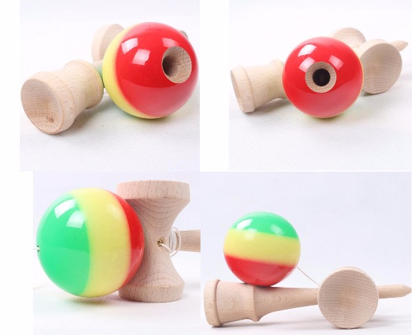 木のおもちゃ 鮮やか 3色 ストライプ ストリートけん玉