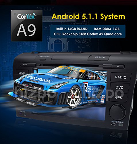 HIZPO 7 Inch Double Din In Dash HD Touch Screen Android 7.1 Car DVD Player GPS Navigation Stereo For Mazda 3 2004-2009 Support Navi/Bluetooth/SD/USB/FM/AM Radio/WIFI/DVR/1080P