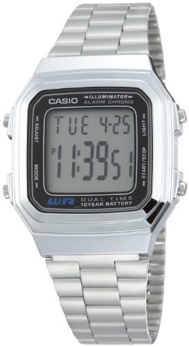 -. Title : Casio Men's A178WA-1A Silver Stainless-Steel Quartz Watch with Grey Dial