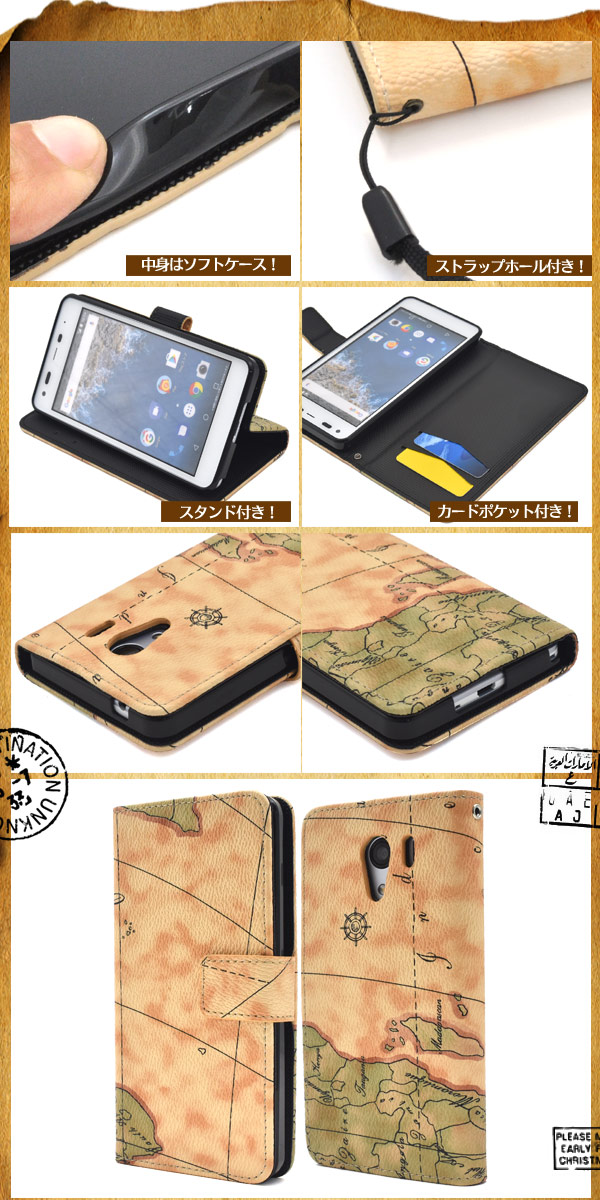 レトロな世界地図デザインがオシャレな、Android One S2/DIGNO G用手帳型ケース!