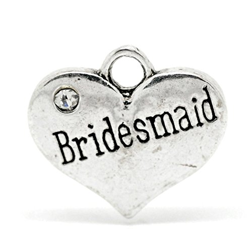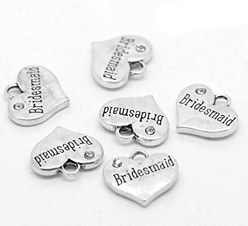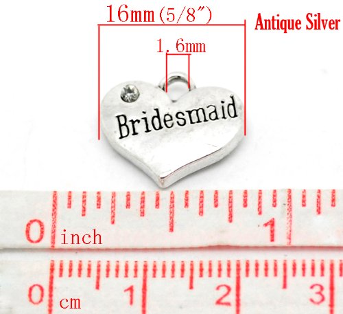 PEPPERLONELY Brand 20PC Antiqued Silver Rhinestone Bridesmaid Heart Charm Pendant 16x14mm(5/8 Inchx1/2 Inch)