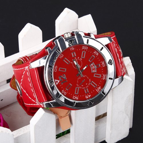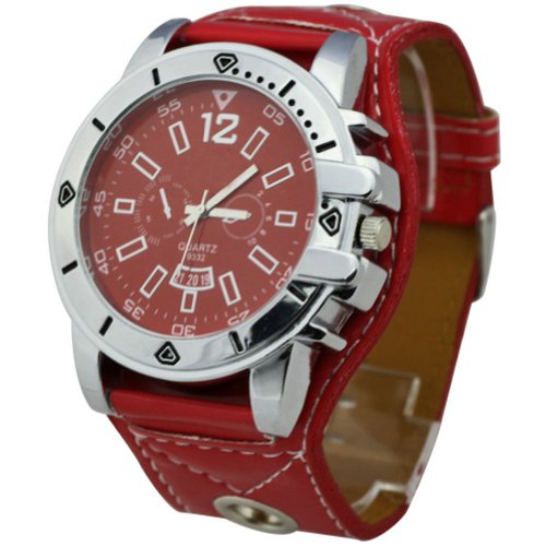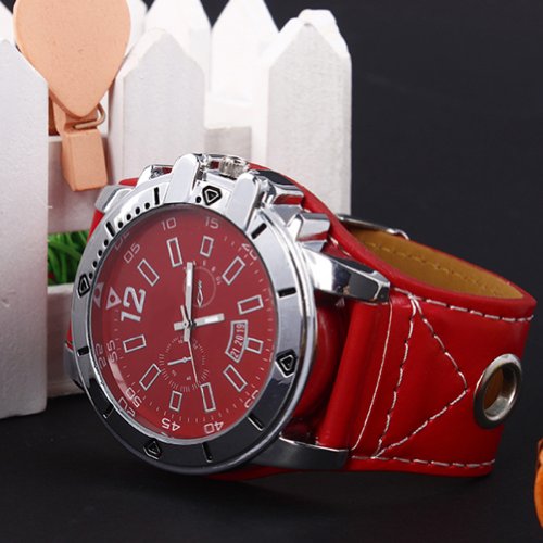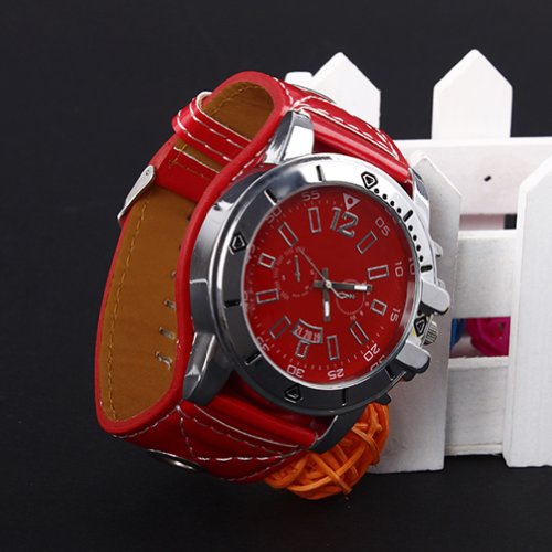 HACBIWA 2013 Classic Men Women Red Letheroid Wrist Watches Big Dial Watches