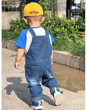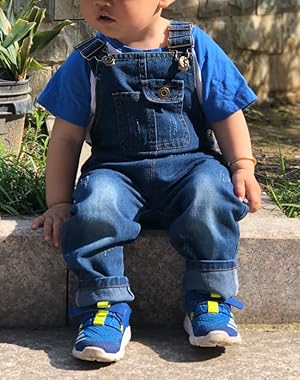 経典組み合わせ簡単子供デニムオーバーオール、綿100%デニム布砂洗、ミッド;