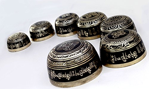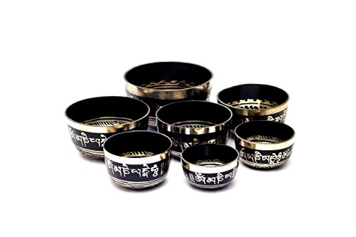 Chakra Healing Tibetan Singing Bowl Sets 7 Sets of Meditation Bowls From Nepal (Black painted)