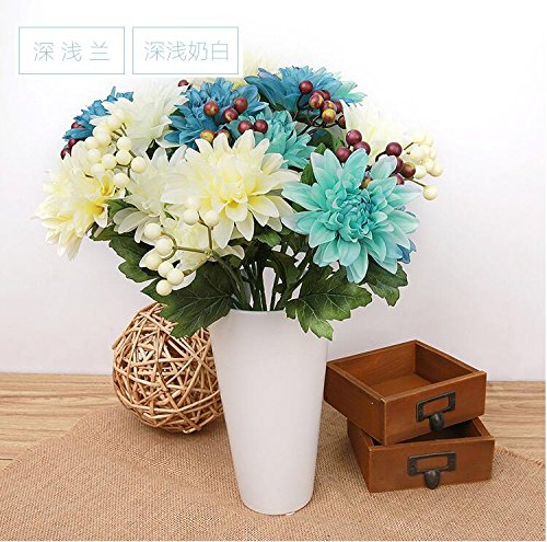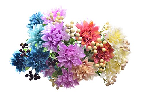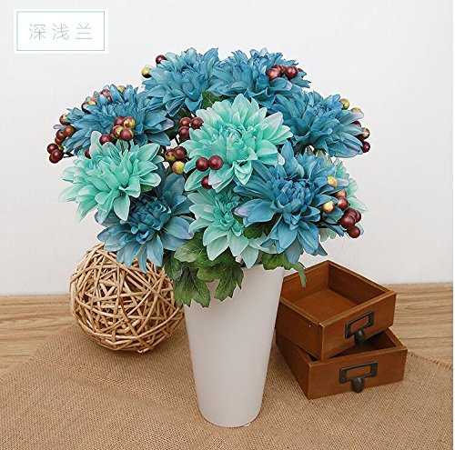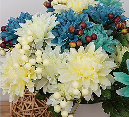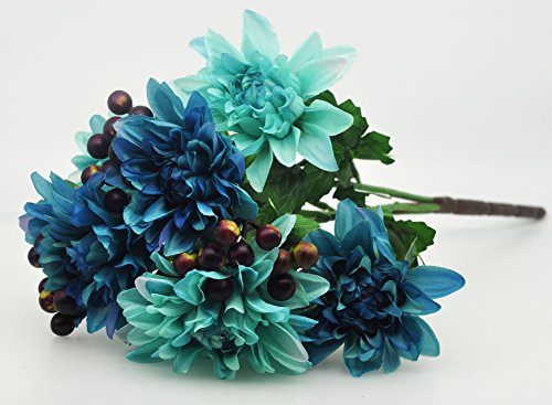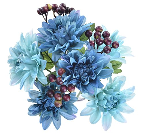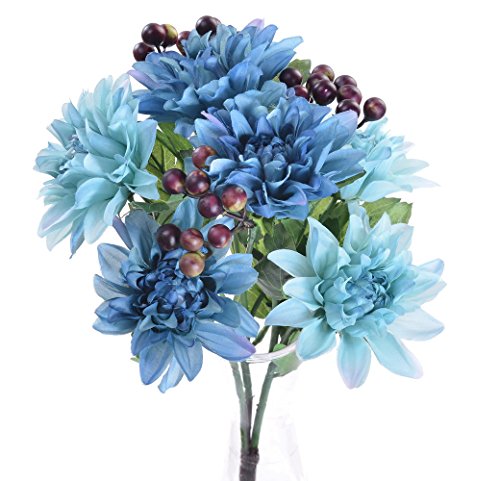 Pack of 2 Artificial Dahlia 16” Flower Bouquet 3 Stems 9 Heads Big Flowers for Home Party Decorations Wedding Favors - Blue