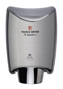 World Dryer K-971P2 Smartdri Plus Hand Dryer, Brushed Chrome, Single Port Nozzle for Fastest 10 Second Dry Time, Adjustable Motor, 110-120V