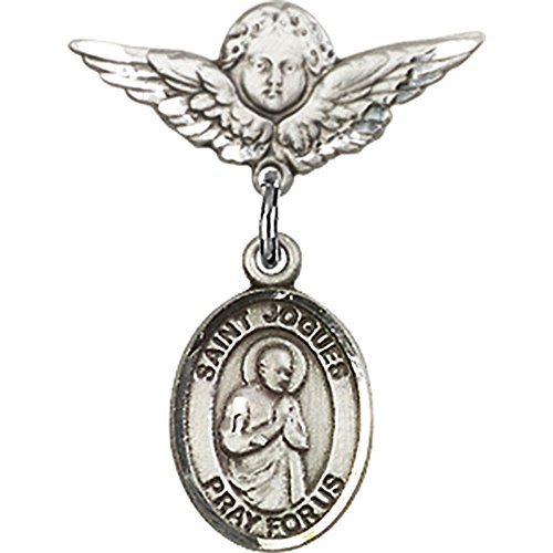 -. Title : Sterling Silver Baby Badge with St. Isaac Jogues Charm and Angel w/Wings Badge Pin 7/8 X 3/4 inches