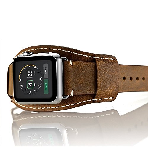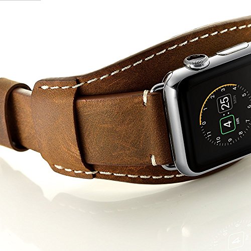 Balerion-Genuine Leather Smart Watch Band Cuff Strap Replacement for iWatch Apple Watch Series 1 Series 2/nike+--38MM cuff Brown