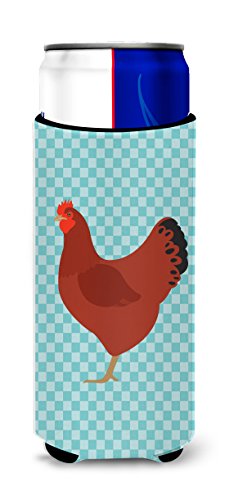 Caroline's Treasures BB8017MUK New Hampshire Red Chicken Blue Check Decorative Hugger, Slim Can, Multicolor