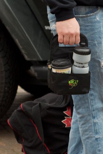 Studio : Balanced Day Bags Publisher : Balanced Day Bags Binding : Kitchen Product Description Eco on the Go Drink Tote Bag; Care: Wipe with damp cloth, hang to dry. Made of 420D Polyester; Open Dims: W5.5 x L5.5 inches; (Height of sides: 4 inches, height to top of handle: 10.5 inches); Flattened dims: 8 x 5.15 x 1.5 inches(20 x 13 x 4 cm) 0