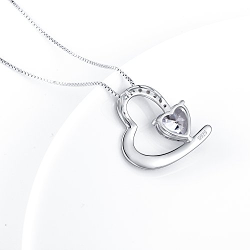 -. Title : FLYOW S925 Love Heart Pendant Necklace 18" for Women