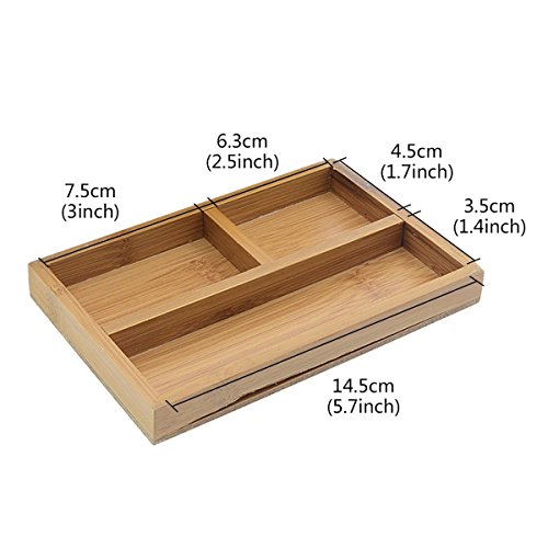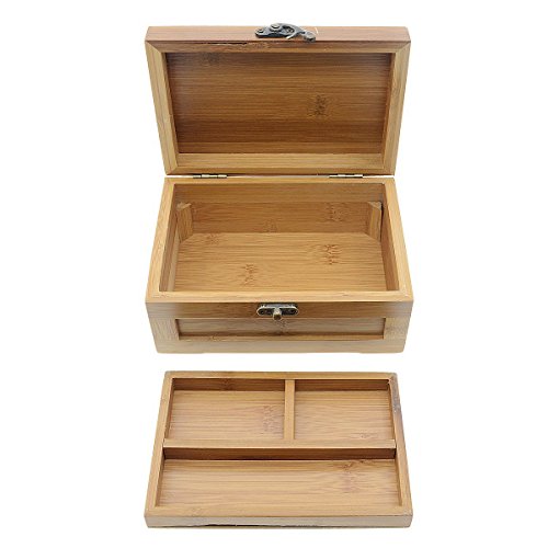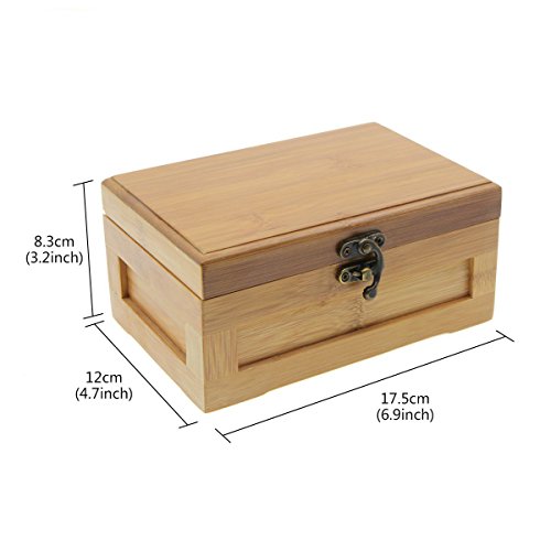 -. Feature : Simple and compact design with elegant outlook and could be used to storage your earrings, rings, necklace, bracelets and other jewelry etc / Has one removable tray to create more space for your various types of jewelry / Made of bamboo material, comes with an antique lock / Keep all your beloved jewelry well organized, easy to find, and beautifully displayed when you store them in this bamboo jewlry box. / Size measures about: 6.9"/17.5cm x 4.7"/12cm x 3.2"/8.3cm(L*W*H)